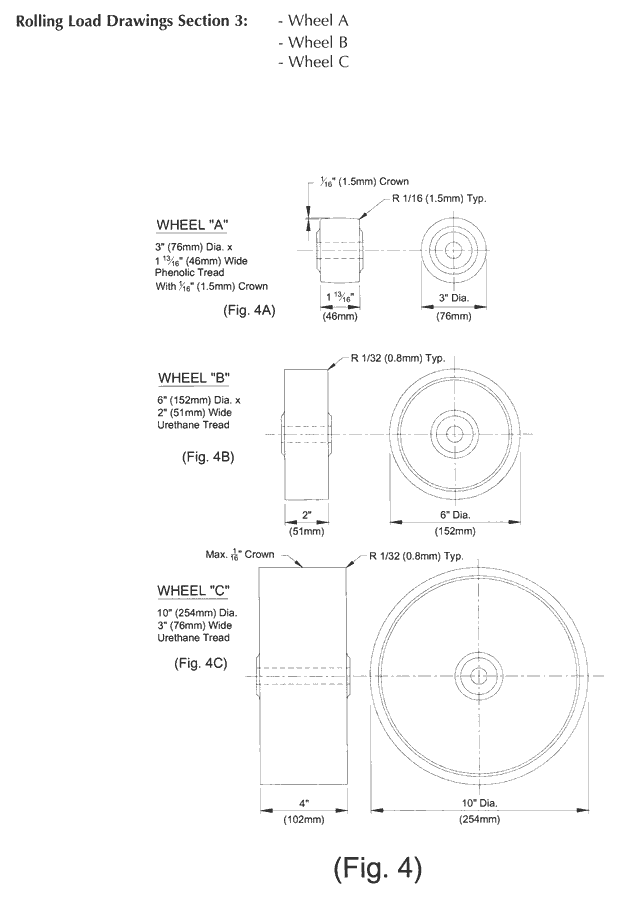 . Weight, nominal dimensions and thicknesses, including fasteners, gaskets, coatings, Other: . Fully describe gasketing, pads, or other items utilized in the system. Wheel# (A, B or C) Imposed Load (lbs) (N) Fixed Path (1 or 2) Number of Passes *Deformation Reported (To nearest .001" [0,025 mm]) *Deformation reported shall be the maximum measurement for both beam deformation and local deformation.