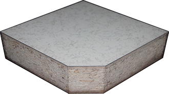 防静电木芯地板采用高密度阻燃刨花板(720kg/m3)基材,底部粘贴优质镀锌钢板,表面可粘贴防静电HPL、导静电PVC、陶瓷砖等饰面。四周采用导电胶条封边。