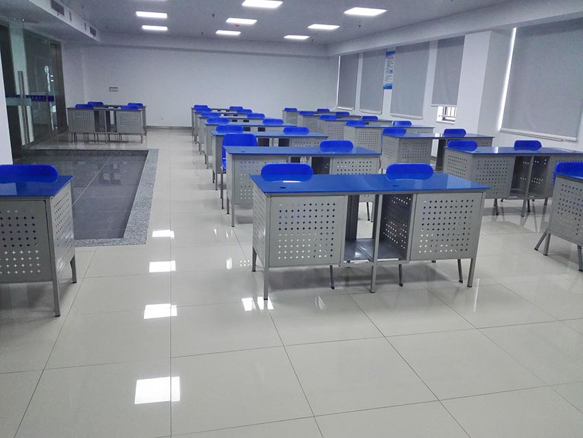 上钢板采用SPCC硬质冷轧钢板,下钢板采用ST14拉伸板,经过拉伸成型、点焊加固、无磷除油脱脂、环氧树脂喷塑后,内腔填充轻质发泡水泥,表面粘贴防静电瓷砖面,搭配网络支架和方管横梁,用螺钉进行固定。