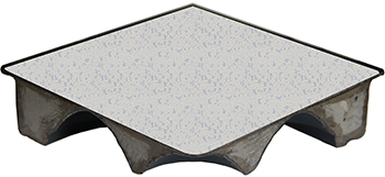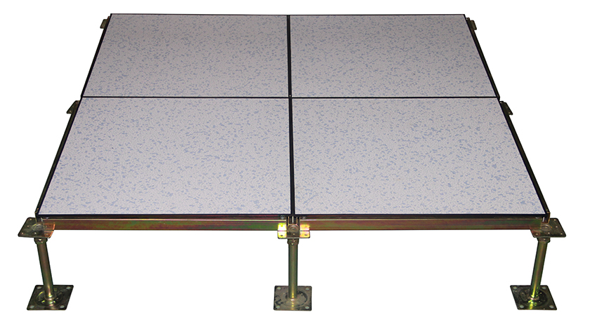 Top plate using SPCC hard rolled steel, bottom plate using ST14 steel for stretch, after automatic spot welding, environmental friendly oil treatment, wear resistant epoxy coating, the panel is them filled with foamed cement. Panel surface is then laminated with anti-static PVC. It can be gravity laid into the infrastructure formed by pedestals, stringers and screws.