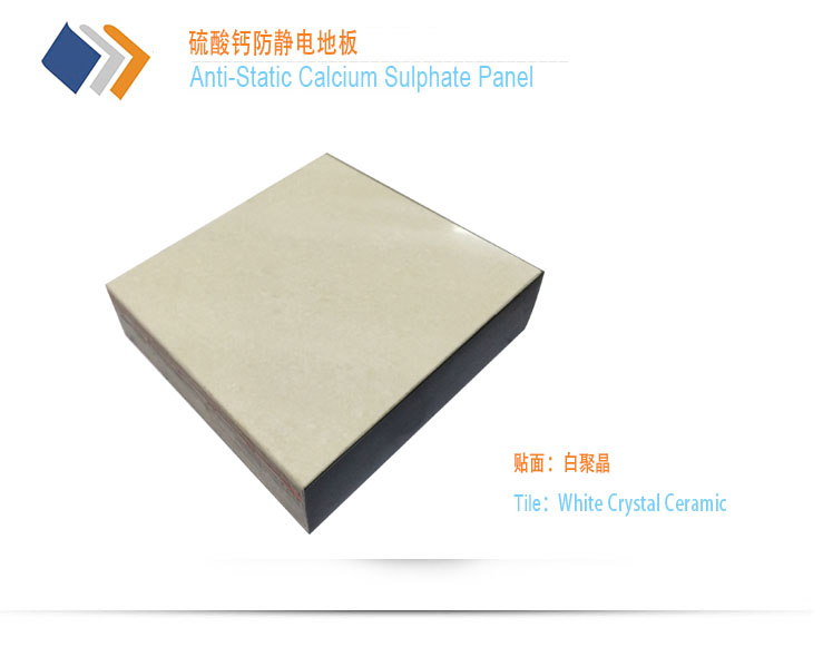 Anti-static calcium sulphate access floor consists of high-density (1500Kg/m3 ) calcium sulphate core. Galvanized steel sheet is bonded to the bottom of the calcium sulphate core. Ceramic is sticked to the top of the calcium sulphate core, four edges are sealed with PVC edge trims.