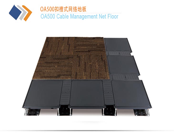 OA500 Cable Management Net Floor system has trunking around each panel. The panel is supported by 4 screws connected with galvanized steel base. Panel height can be adjusted from the top of panel. Each trunk has an outlet hole,offering maxmium solution of wiring. Strong and weak currency can be marked and seperated in different trunks which is conventient for maintance and reconstruction, also saving building space.