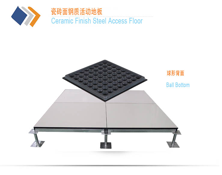 Top Plate using SPCC hard rolled steel,Bottom Plate using ST14 Steel for stretch,after automatic spot welding, environmental friendly oil treatment,wear resistant Epoxy Coating,the panel is infilled with foamed cement.Panel surface has wear-resistance and anti-static ceramic finishes,can be gravity laid into the infrastructure formed by pedestals,stringers and screws.